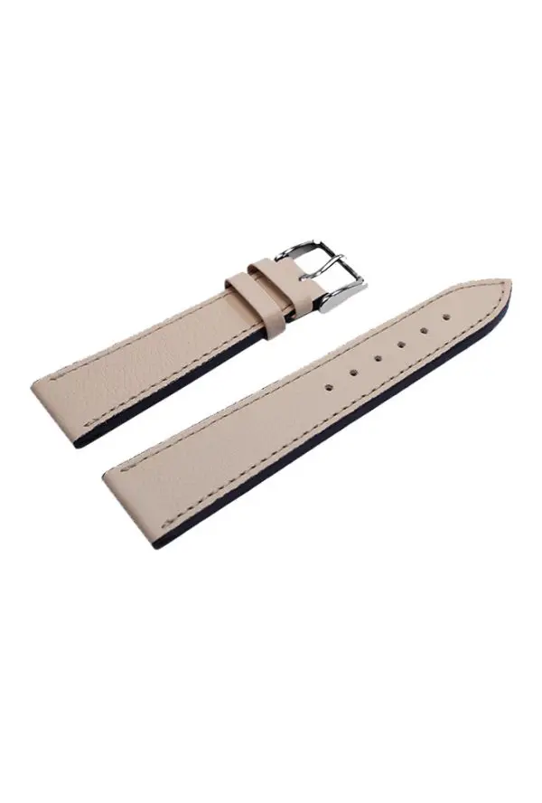 Watch strap made of fine cowhide leather, 125 x 85 mm, stainless steel pin buckle, color: brown with side contrasting seams in beige, width of lug: 20mm