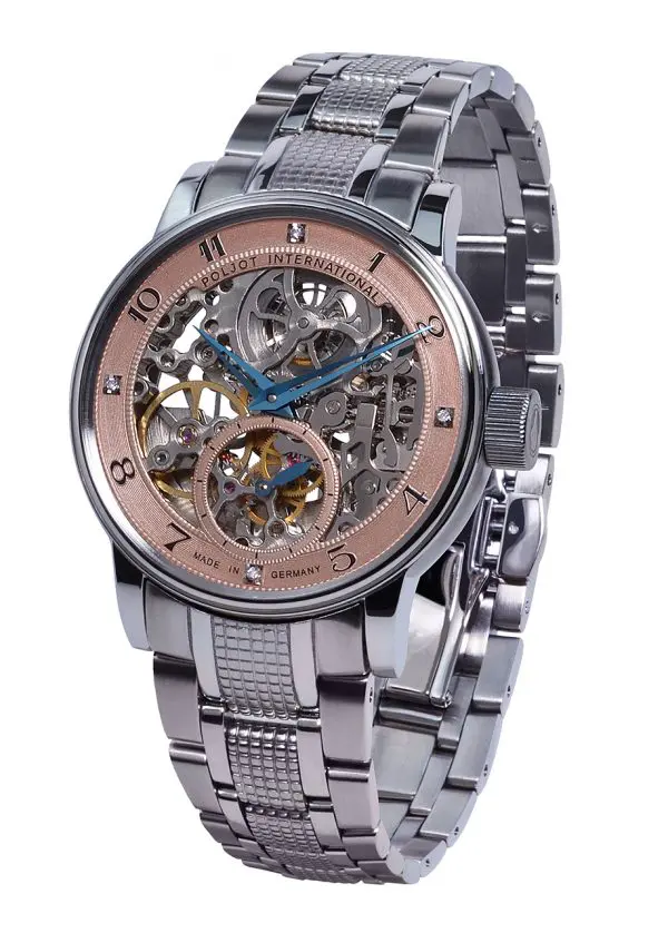 Werk: Automatik Kal. 2723 SeaGull, skelettiert, 20 Steine, 21 600 A/h, stoßgesichert, Gangreserve 40 Stunden