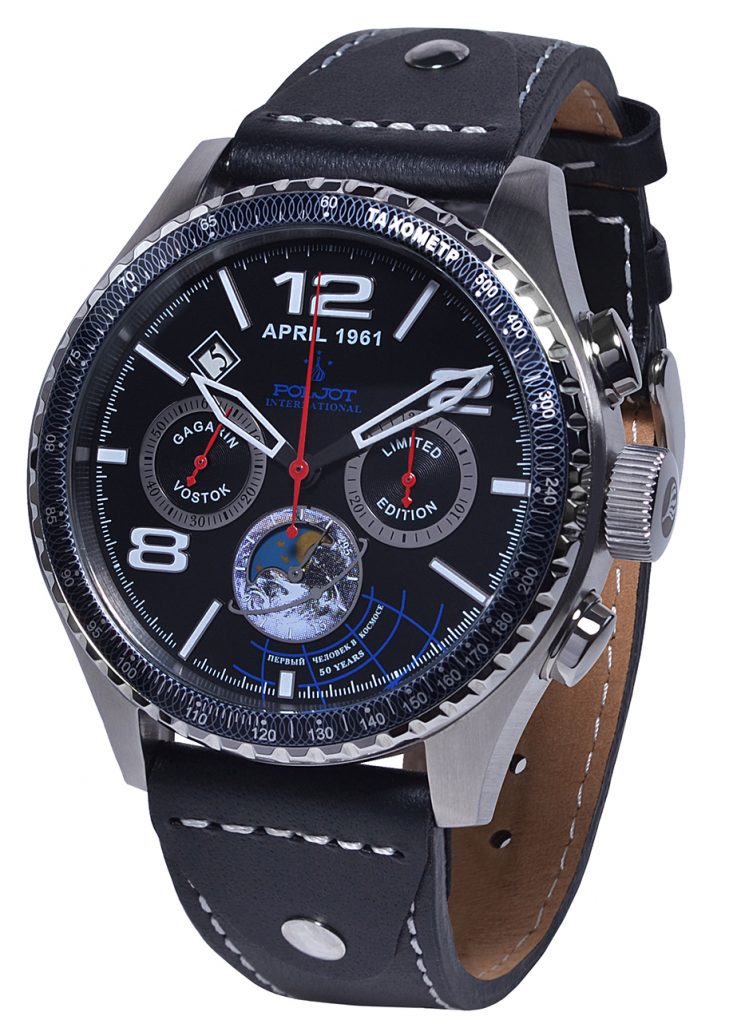 Werk: Chronograph, Handaufzug, Kaliber 31679 Poljot, 23 Lagersteine, 21 600 A/h, Gangreserve 42 Stunden (36 Stunden bei eingeschalteten Stoppfunktion)
