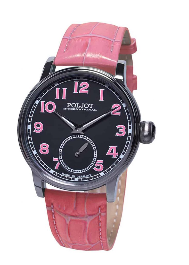 Zifferblatt: Schwarz mit pinkfarbenen Ziffern