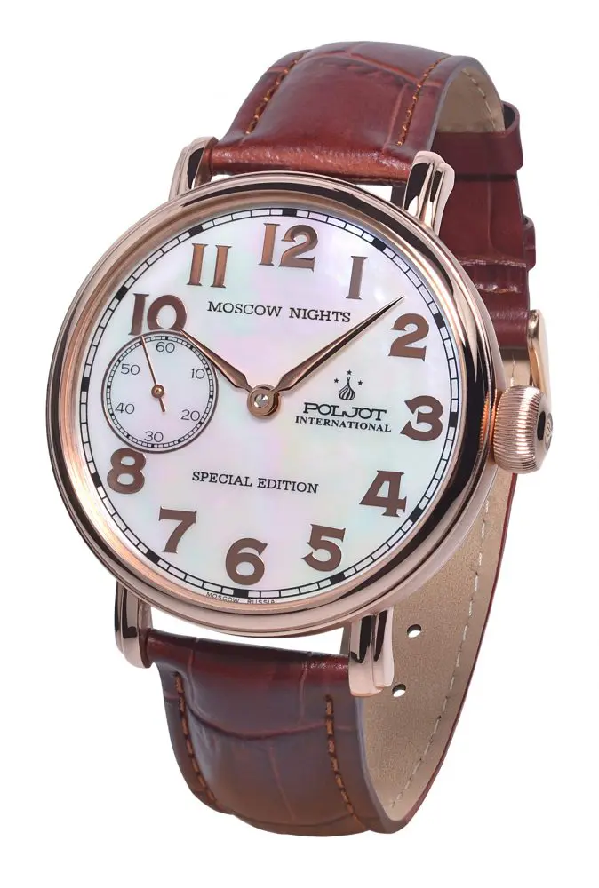 Werk: Handaufzug Kal. 9011-PI, 18 Steine, 18 000 A/h, 38 Stunden Gangreserve, veredelt mit โGenfer Streifenโ