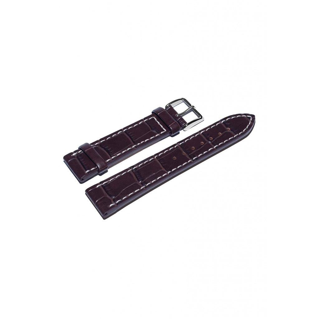 Calfskin watch strap with croco-optics, 120 x 75 mm, stainless steel pin buckle, red-brown with light stitching, lug width: 20mm