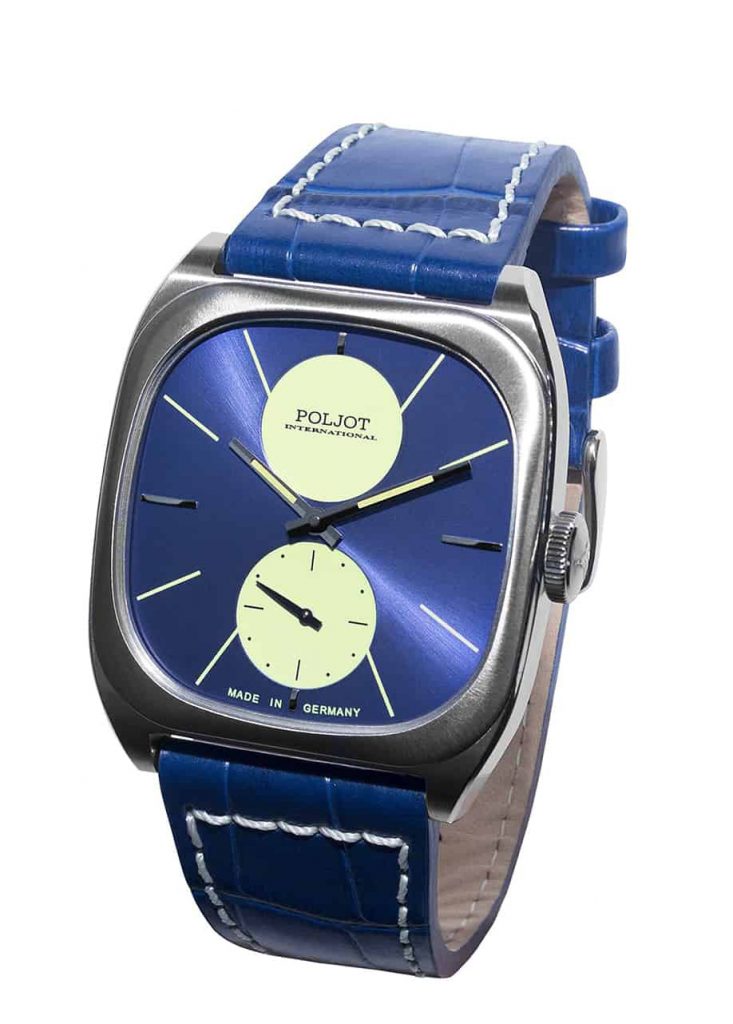 Strap: Blue calfskin strap with light-colored stitching