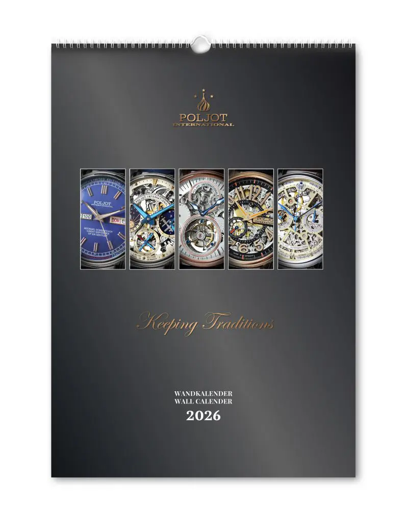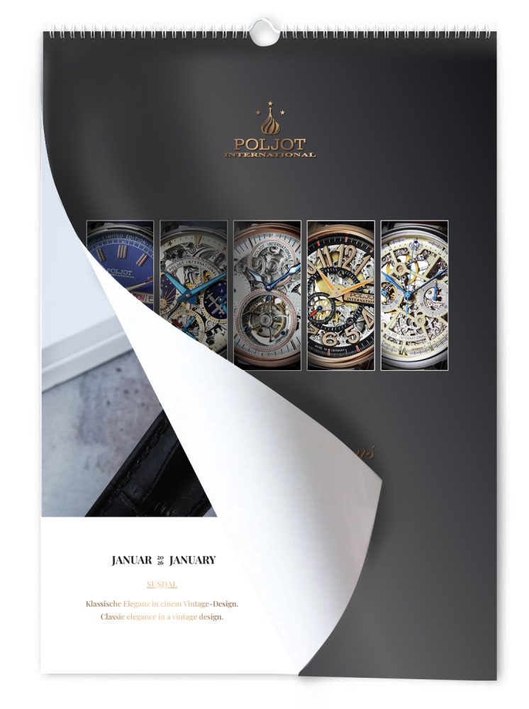 Starten Sie stilvoll ins Jahr 2026 mit dem exklusiven Wandkalender von Poljot International. Dieses edle Stรผck vereint praktische Planung mit einem Hauch von Eleganz und Design.
