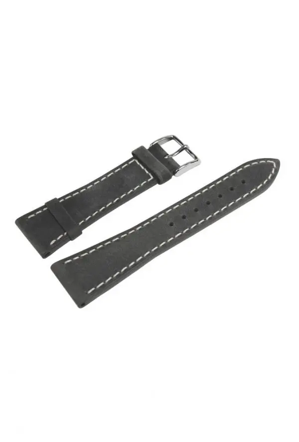 Watch strap made of fine cowhide leather, 120 x 75 mm, stainless steel pin buckle, color: dark gray with side contrasting stitching in light blue, lug width: 20mm