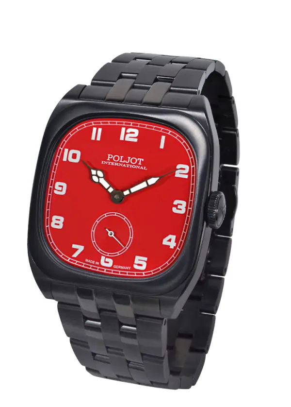 Zeiger: Schwarz lackiert mit Leuchtmasse, kleine Sekunde mit Leuchtmasse